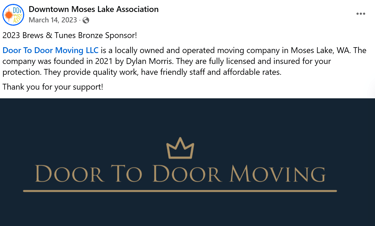 Here at Door to Door Moving, we know how much a helping hand can mean.